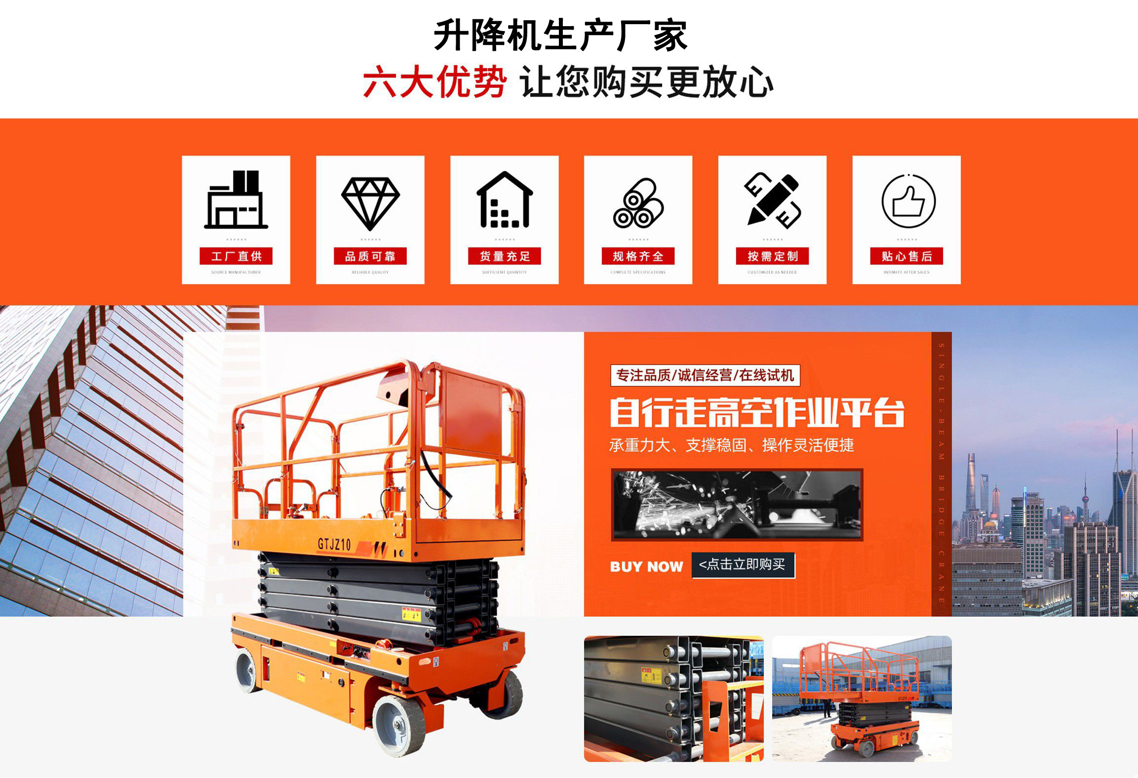 升降機生產(chǎn)廠家是專業(yè)從事升降平臺,液壓貨梯,卸豬臺,平板拖車,液壓提升機,移動式升降機,升降平臺車,高空作業(yè)設備,貨梯廠家,液壓登車橋等升降機械產(chǎn)品制造十余年,服務過各大國內(nèi)外企業(yè)。 自公司創(chuàng)立以來,經(jīng)過長期對液壓升降臺的研制和探索,積累了豐富的專業(yè)制造技術(shù)和寶貴經(jīng)驗。憑借豐富的專業(yè)技術(shù)及不斷開拓創(chuàng)新的精神,現(xiàn)已成為專業(yè)于升降機械的公司。 長期以來,憑借公司不斷的壯大及對液壓技術(shù)的不斷改進和探索。能根據(jù)客戶不同的要求設計一套合理、完善的方案供客戶參考?,F(xiàn)有產(chǎn)品:升降平臺,液壓貨梯,卸豬臺,平板拖車,液壓提升機,移動式升降機,升降平臺車,高空作業(yè)設備,貨梯廠家,液壓登車橋等。本產(chǎn)品在各類工礦企業(yè)、港口物流以及其它領域均發(fā)揮著重要的作用。始終以“以信譽求生存、以技術(shù)求發(fā)展”為本廠的經(jīng)營理念。只要你選購我廠的產(chǎn)品,無論你身在何方都能得到我們迅捷優(yōu)良的服務?! 」咀猿闪⒁呀?jīng)來本著"團結(jié)、求實、創(chuàng)新、互贏"的理念,以先進的技術(shù)和服務,為客戶建造滿意的產(chǎn)品。幾年來受到廣大客戶的好評。...